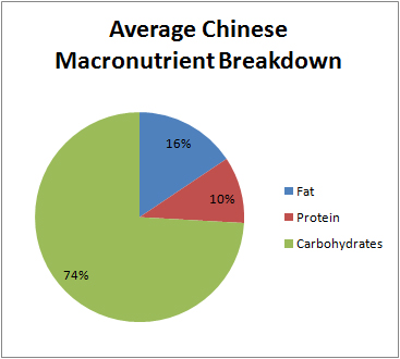 The average diet of all counties studied in the China Project is clearly carb-based, low in fat and protein (as a percent of total calories):