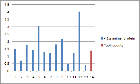 11. “[M]eat consumption for one of the counties, Tuoli, was clearly not accurate on the 3 days that the data were being collected. On those days, they were essentially eating as if it were a feast to impress the survey team but on the question of frequency of consumption over the course of a year, it was very different.”