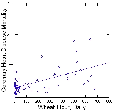 Mostly, what I’m looking for is a little somethin’-somethin’ that both wheat flour and heart disease have in common. A shared variable that could be slyly—and wrongfully—framing wheat as our heart-harming villain.